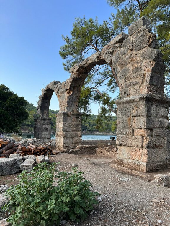 The ancient city of Phaselis is a place where everyone who comes to Turkey should visit! The ruins of an ancient aqueduct, an amphitheater, Roman baths - and all this is framed by the most beautiful nature: pine forests, blue sky and turquoise sea coves. If you stock up on a snack, you can have a great day! We took a taxi from Tekirova - 15 dollars one way. They sell tickets at the entrance, something like 470 liras per person, and only cash liras or cards are accepted for payment. For those who like to walk, you can get to Phaselis from Tekirova on your own, turn left from the Rixos Hotel past the water park onto the Lycian trail and