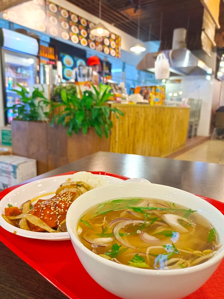 Быстро и вкусно! Порции для наесться более чем :) Зашла поесть лапшу с уткой, помня про такое блюдо в Pho Bo, но в ТЦ оказался ресторан не этой сети, но тоже с едой вьетнамской кухни. С уткой ничего не было, взяла суп с рисовой лапшой и морепродуктами в бульоне том ям (фо хай шан). Это отвал башки просто. Ела так смачно, что эйрподсы 2 раза из ушей выпали 😊 Жаль, что персонал не разговаривает на русском, но это походе фишка подобных заведений. Фото не будет, потому что, ощутив аромат супчика, мне уже было не до внешнего мира 😋