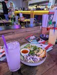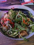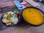Салат с говядиной (595р) - очень вкусный, мясо приятно хрустит, много зелени, красивая подача. Том Ям (620р) - крем - суп какой-то 🫤 Густой, но ингредиентов мало, помидоры есть, в меню указаны не были, подаётся с рисом. Чая в чайнике у них нет. Пришлось брать лимонад на каждого. Я выбрала кислятину, которую не смогла даже допить. Годза, типа жареные пельмени (300р) - ничего особенного, подаются с соусом. Антураж простой. Подвожу итог, за салатом я бы вернулась, но не более. Том Ям очень люблю, но здесь он мне не понравился.