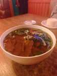 Отличное место! Не пафосное, но вкусно, сытно и довольно бюджетно. Порции огромные. 600/1000 мл супы, второе 400 гр, а лимонады 1500 мл есть, либо бабл чай/фраппе/фруктовый чай по 500 мл. Брала утку по-пекински - по мне так сухая очень. Прям очень. Но всё равно вкусно) Баблти Таро оказался с очень необычным вкусом. А картошка фри с соусом получилась очень необычной. Взяла ещё с собой десертов, т.к в заведении уже было невозможно их съесть - объелась😄 Видно, что место популярное. Мы пришли, а посадка полная. И только-только успевали столы освобождаться, тут же другие занимали. К сожалению, не очень просто найти заведение, т.к вход "со двора". Соглашусь с другими комментариями, что подача очень быстрая. 7 минут и тарелки уже на столе, а мы как раз были очень голодные)