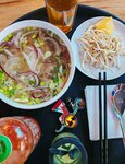 Фо бо неплохой а вот салат с говядиной отвратительный, заправки никакой просто тупо накиданы ингредиенты и креаеточные чипсы. Еще и ко всему хамское обслуживание сквозь зубы и демонстративное закидывание в пакет еды и приборов при заказе с собой