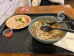Спасибо за волос в фо бо, бледную полумёртвую мидию (две остальные были насыщенного оранжевого цвета), в том яме, нежующиеся куски овощей в том яме (я посмотрел состав в описании на их же сайте: ноль совпадений), лавровый лист в том яме (что?!). Бульон ненаваристый вообще: приготовили за три минуты, но на вкусе отразилось существенно. Баньбао при мне просто разогрели в микроволновке. Очень люблю данную сеть заведений, никогда подобного ужаса не встречал. К сожалению, отзыв не наигранный. Руководству заведения просьба постричь сотрудников и попросить их не добавлять в суп того, чего нет в его составе.