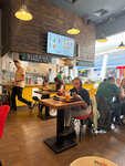 Очень вкусно, быстро! Есть система лояльности - не поленитесь скачать, очень даже неплохо. В др, например, сделали скидку 15 процентов. Приятно. Порции сытные, мяса много, но остановиться и не доесть просто невозможно. Люблю их манговый шейк!