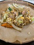 Были в воскресенье днем народа не очень много, заказали рисовую лапшу с овощами, вегетарианскую и лимонад. Заказ был готов минут через 10. Быстро. Вегетарианская лапша - отдельная тема. Из овощей - много - много припущенного лука большими кусками, морковь и пекинской капусты пара кусочков. И очень очень много масла. Кроме вкуса лука не чувствовалось ничего. Лимонад вкусный