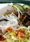 С говядиной, рисовой лапшой, имбирем и луком. Подаётся с лаймом, кинзой, острым перцем, ростками бобов, мятой