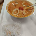 С сыном ждали начало сеанса в кинотеатре, ему захотелось чего то новенького и выбор пал на Том Ям. И вот вроде бы обычный футкор на севере Москвы, а блюдо приготовленно с душой и получилось потрясающе вкусным, только ради этого сюда нужно придти. Кальмар нежнейшие, рис к супу приготовлен как надо. Креветки соответственно тоже получились 👍. Так что со спокойной совестью рекомендую 👍👍👍