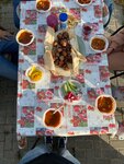 Место тихое, спокойное, жалко только вид не очень за спиной получается, могли бы какими нибудь банерами или красивым забором закрыть🤷🏻 и к сожалению на территории и дорожках к дому лежали экскременты животных(овец видел по дороге), им бы тоже оградить доступ туда. Но зато есть вода, стулья хорошие, мягкая подушка была чтоб сидеть с наполнителем. Из минусов еще конечно страшные решётки и шампура для жарки мяса🤷🏻 желательно бы организовать хозяевам там щётку железную что бы можно было очистить их от оставшейся еды с прошлого раза)))
