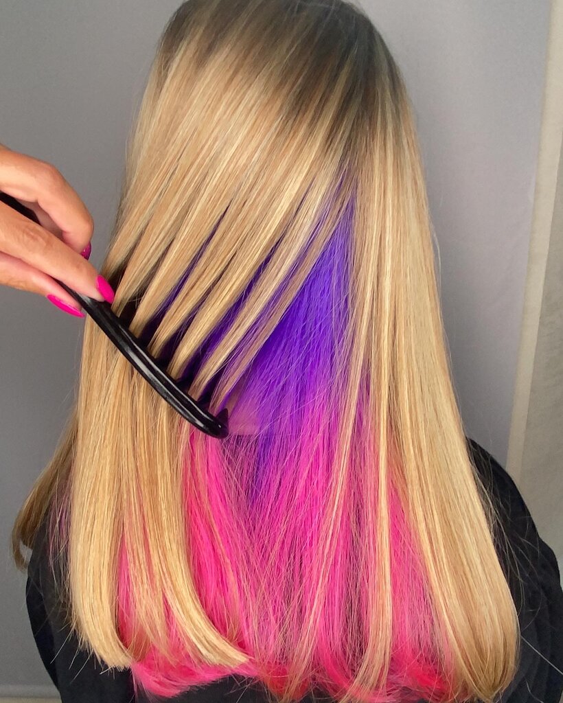 Яркое цветное окрашивание волос