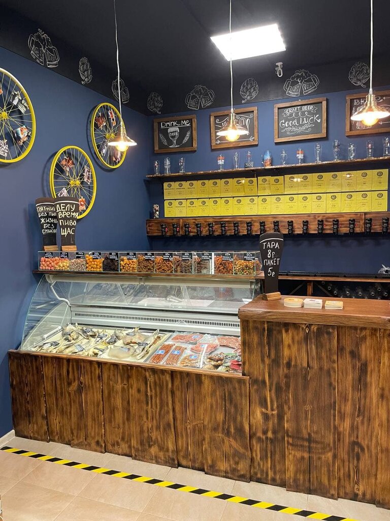 Приветливый персонал, могут поддержать/начать беседу. Неплохо разбираются в представленных сорта. Можно посидеть как за небольшой стойкой у окна, так и за столом в небольшом зале. Хороший выбор закусок, НО малый выбор разливного, холодильник с баночным не нашёл. И минус ещё за то, что при смене сортов пива стакан не меняют, а наливают в тот же.