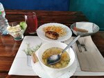 Блюда хорошие, продукты свежие. Но оргазация ни о чем, музыку сами как хотите КРУТИТЕ , посадили нас на веранду ОТДЕЛЬНО, в итоге и гости и официанты ходили туда и обратно. Там хорошо проводить время днем, так просто поесть, а вечерок так себе.