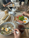 Пришли на завтрак. Визуально - очень приятные впечатления, меню разнообразное. По ценам я бы сказала, что выше среднего скорее по Ставрополю, но надо отдать должное - порции действительно большие и одним блюдом наедаешься. Заказали гречневую кашу с вешенками - бомба, очень вкусно. Английский завтрак - классика, но помидоры слегка пластиковые. Хорошая и чистая уборная с заботой о гостях. Что не понравилось: смузи с бананом и чиа, тк ожидали, что будет сбитый банан, а чиа цельное, но его тоже сбили, из-за чего получилась не самая приятная крошка, пить которую неприятно, обычная цельная чиа разрулила бы эту проблему) Сидели на улице - может, мне как-то не повезло, но стул сильно шатался на плитке, тк сам по себе очень хлипкий, ходил ходуном, подушки на стульях тоже как-то выборочно лежат. Касательно сервиса - базовый минимум присутствует, уже хорошо) Оценка положительная, желание еще вернуться в общем и целом есть