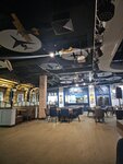 Самый необычно оформленный интерьер!!! Стол-крыло самолета, пропеллеры, иллюминаторы, чертежи-просто нереальная атмосфера!!! Но все впечатление портит персонал. Первый раз были с детьми, и нам просто забыли приготовить половину заказа. Каким-то образом официант донес на кухню не весь заказ. В следующий раз зашли в 21:00, но на входе сразу сказали, что кухня уже закрыта, хотя заведение работает до 22:00. После заказа двух бокалов пива нас и вовсе попросили удалиться, так как касса оказалась закрытой и наш заказ выполнить невозможно. Очень жаль, что такое интересное место так странно работает, больше туда ни ногой.