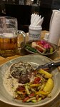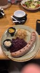 Была здесь один раз с большой компанией в вечер субботы. Была довольно быстрое обслуживание, учитывая немалый стол и время суток выходного дня. Брала не помню какую конкретно колбаску (на фото). Огромная, конечно, но как по мне и по моему вкусу, на троечку. А салаты тем паче. Они никому не понравились из тех, кто заказал то же самое блюдо.