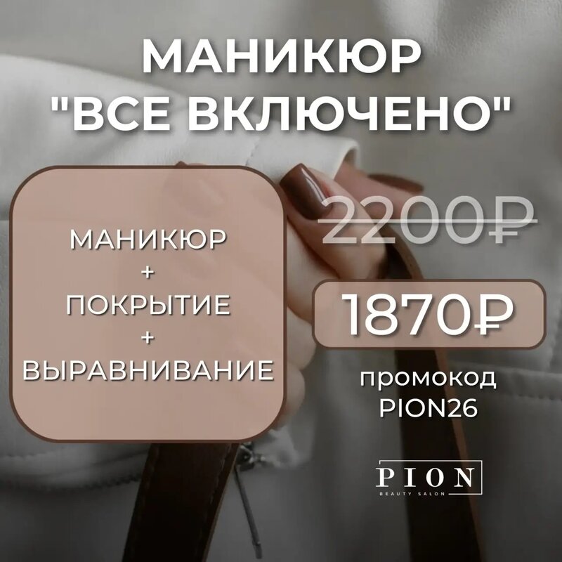 Почувствуйте себя особенной с классическим маникюром от Pion в Пушкино! Качественная и долговечная работа подчеркнёт вашу индивидуальность, а современный дизайн оставит приятные впечатления. Станьте частью тренда уже сегодня!