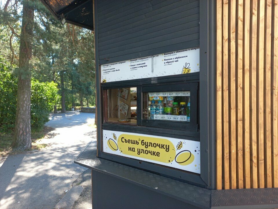 Это киоск с выпечкой и кофе. Можно заказать пироги. Удобно. Выпечка вкусная. Сеть этих киосков по всему городу.