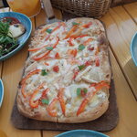 Не вкусно, все очень жирное, не соленое, сервис отсутствует. Пицца с баклажанами жирная и не соленая. Зеленое ризотто почти безвкусное (с при привкусом гороха) абсолютно не вкусно, не стали есть, официант забрал блюдо, не предлагал переделать просто унес, а потом подошел и спросил включать ли в счет, на что мы ответили что не очень бы хотели платить за то что не ели, в итоге в счет нам его включили сказав, что нет оснований убрать это блюдо из счета Заказывали вителло тоннато спросили идет ли к нему хлеб, официант сказал что в качестве комплимента принесут питу, в итоге питу принесли уже после того как попросили счет. Блюдо так же было пресным Только паста с креветками была нормальной по вкусу. Не было всей неаполитанской пиццы!