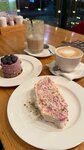 Были в Пить Кофе, заведение само по себе красивое, местоположение хорошее, но еда отвратительная. Блин с лососем на фото только кажется полноценным блюдом, то факту является закуской. Блин то ли заветренный, то ли лосось не свежий, короче говоря, его даже недоели… Жульен был вкусный, но порция настолько маленькая, что насытиться не удалось🙁. Время ожидания еды было очень большим (30 минут), хотя забито всего 3-4 стола в зале. Так же хотели попробовать сезонные десерты, но их в наличии нет. Взяли меренговый рулет с фисташкой и малиной и в самом рулете нашли большую косточку (не фисташка !!! ), об которую чуть не сломали зуб. Кофе был достаточно вкусный и красиво украшен, но я думаю, что это единственное, что нас порадовало. Все эти факторы и сложили оценку. Очень жаль, что кафе ухудшилось со временем.