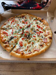 Давно покупаю тут пиццу, раньше была очень вкусная. Сейчас все хуже и хуже. Сегодня я взяла последний раз, так как за такую цену этот кошмар уже ни в какие рамки не лезет. Снизу пицца подгоревшая и тесто как резина сухое, сверху залита скорее всего для жирности маслом, которое прям течет, мяса толком нет, сыр я вообще не поняла какой использовался, он даже не расплавился а лежал хлопьями. Очень жаль, что работники и руководство так стали относиться к своей продукции. Сама не возьму и никому не порекомендую.