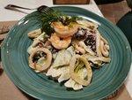 Вежливые официанты. Уютная атмосфера и не так людно. Вкусное меню, красивая подача. Очень понравился напиток матча-латте: необычно приятный вкус. Салат с морепродуктами сочный и мясистый. Немного подкачала свиная шейка: сочная, но передержана, но обещали исправить. Рекомендую это место к посещению: уютно для посиделок, спокойно и вкусно. 😋
