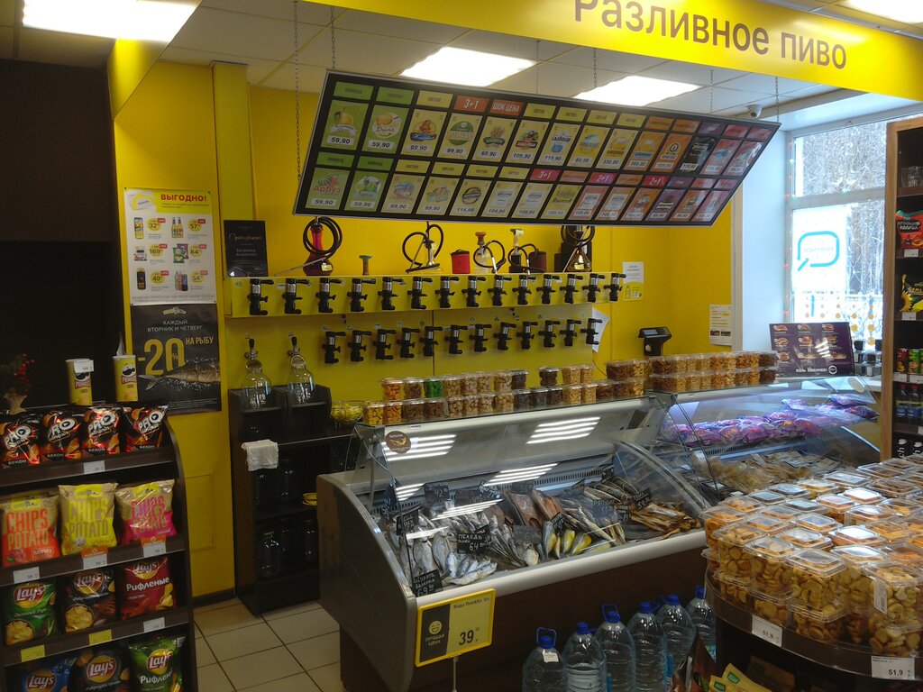 Вроде бы не плохой магазин. Молодежь идёт берёт пиво какое хотят. Какое им нравится. Но кроме пиво есть сухарики, чипсы, солёная рыбка. Но больше нравится пиво бархатное вкусное пиво.