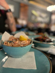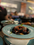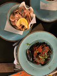 Это больше кафе, чем ресторан. Обслуживали столик разные официанты (они молодцы). Подача блюд на компанию очень разочаровала. Приносили каждому отдельно и от 15 до 30 минут каждый ждал свой заказ, смотря как другой ел или пил... Практически все блюда переолены. Мидии ужасные (и не свежие). Нарезка сухариков в салат Цезарь очень мешает его есть. И да, в ресторане тарелки должны быть белыми! 3 звезды только потому,что оплачивала банкет не я.