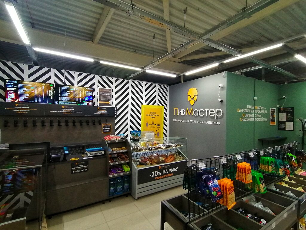 Очень хороший магазин разливнова пива. Закуска всегда свежая и хорошего качества, Пиво очень вкусное покупаю там постоянно много новинок, постоянные розыгрыши, акции, общение вежливое, кроме пива есть и много других товаров очень удобно.