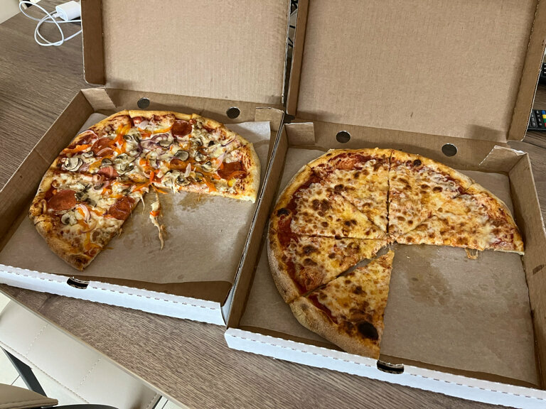 Заказали через Яндекс Go, привезли очень вкусную и горячую пиццу!!! На тонком тесте и много начинки! ОБЪЕДЕНИЕ) Рекомендую! Фото сделать сразу не получилось))) Очень вкусная- не удержались!