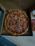 Мы взяли мужскую 720 г. Сама пицца безупречная , спасибо повару, очень приветливая девушка. Но та, которая работает на кассе, и является лицом компании, и должна помочь с выбором вообще никакая. Какой вопрос не задашь, ответ сквозь зубы, как - будто ей все должны. Вызывает только отрицательные эмоции. И кофе, который заказываешь вместе с пиццей хочется получать горячий, а не остывший, пока готовится пицца.