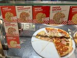 По мне тут вкусная и дешёвая пицца,посмотрел на комментарии ниже и офигеваю, с витрины им дали....ну так она у них и делается ежедневно и продаётся в течении дня кусками,либо заказывайте целую,а если заказали две половинки,то логично что вам её из кусков соберут которые вполне нормальные. Никогда не было такого, чтоб я брал там кусок пиццы,а он по ощущениям долго лежал. И требовать из-за этого директора....некоторым людям лишь бы поскандалить. Короче пиццерия хорошошая,время работы у неё хорошее, покупателей много,персонал не грубит,меня всё устраивает.