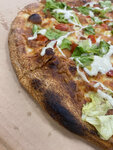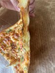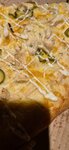 Тесто -пресное Сыра нет почти совсем Курица ужасно сухая Нет возможности добавить несколько прзиций (больше двух) Соуса тоже зажали и нет возможности его добавить.