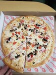 Очень вкусная пицца. Ребёнок любитель пепперони, здесь она просто бомбическая. Есть игровая комната с горкой и игрушками. Быстрое обслуживание. Приятная и уютная атмосфера.