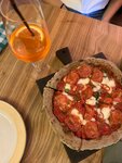 Прикольная пиццерия, однако она очень маленькая. Когда мы были в конце 2020 заведение имело достаточное пространство для посетителей, но видимо этот ресторан тяжело пережил ковид и уменьшился почти в два раза. Однако кухня тут осталось на высоком уровне. Готовят очень круто. Пиццы небольшие, для одного человека. В итоге атмосфера 4/5(мало места) кухня 6/5 Расположение 5/5 Меню 5/5