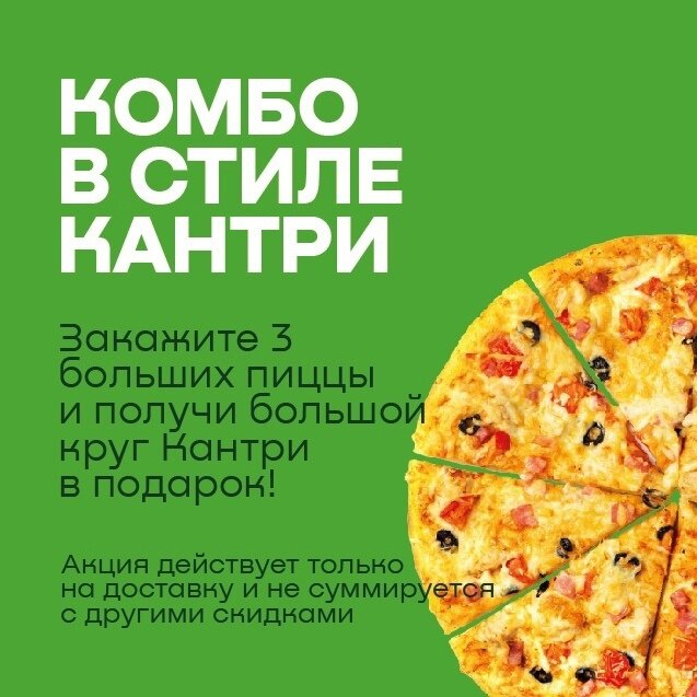 Заведение отличное, начну с плюсов 1: большой объем пицц 2: относительно маленькие цены 3: акции которых довольно много ( при покупке 2 пицц кола 1л в подарок ) 4: отличное место собраться компанией Могу отметить только 1 минус Это маленькое разнообразие меню Но все равно все вкусно, 5 звезд