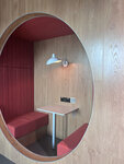 Красивый молодежный коворкинг. Много зон для работы и отдыха: столы, диваны, пуфы, отдельные удобные кабинеты. Очень стильное пространство. Есть кухня с едой, уборные и даже комната для сна.