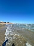 Сегодня, как никогда, пляж был добр в отдыхающим. Лёгкий тёплый ветерок и накатывающие барашки волн. Теплая вода, пологий спуск в воду, метров 100 по пояс, затем 100 - по грудь, и, вдруг поплыл. Красотища. Пляж чистый, песок мелкий, спрессованный, некоторые вкрапления половинок ракушек, но они мелкие и не беспокоят. Есть стационарный современный туалет, жезлонги, спортивный городок, навесы со скамейками. Чай из самовара и небольшое кафе с напитками, сахарная вата, мороженое, фут стрит. И это ГОРОДСКОЙ пляж, важно, что рядом нет никаких производст и жилые дома в стороне. Вода чистая и приятная для купания и детей и взрослых. Добраться можно любым способом, на удобно на такси -100 руб. для живущих в Каспийске.