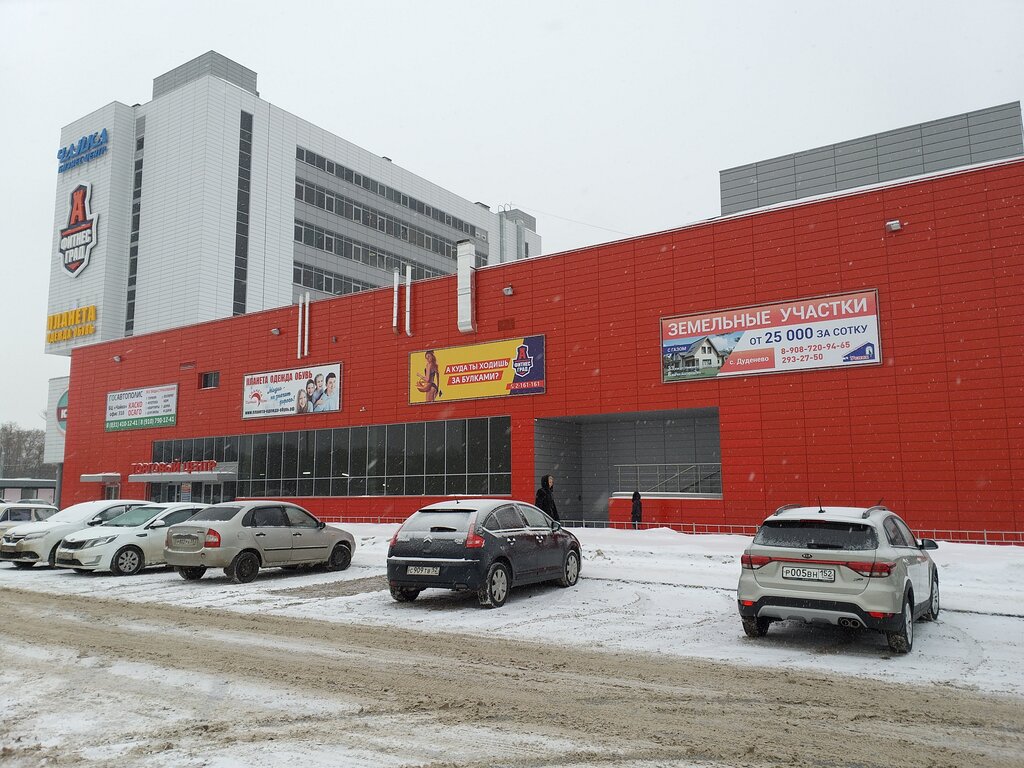 Огромный магазин. На первом этаже одежда, на цокольном сумки и обувь. Большое разнообразие по очень низким ценам. Плюс всякая мелочь типа носков, трусов, перчаток, чехлов на телефон и кошельков. Рядом магазин Окей и остановки трамваев, троллейбусов и автобусов.