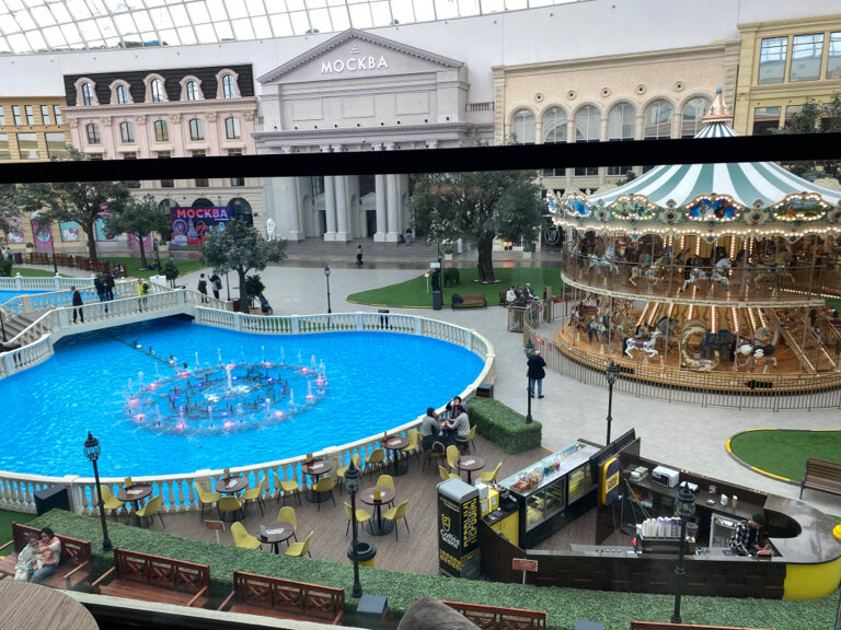 Приятная обстановка, обходительный, вежливый, дружелюбный персонал. Классный вид на центральную часть с куполом и бассейном Острова мечты. Были в день рождения, порадовали десертом со свечкой в подарок в сопровождении музыки и поздравлением от персонала. Спасибо ❤️