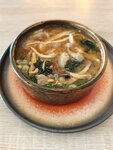 Заказывала классический мисо и жаренный рис с тунцом. Мисо с обычным тофу (не шелковый), огромное количество водорослей и два вида грибов. На мой вкус этого слишком много. Рис жаренный предполагал карри в рецепте, так вот, его вообще не чувствуется из-за черного перца, который есть на кусочках тунца. Перец все перебивает своим ароматом и вкусом. Расчет был наличными. Официант принес сдачу и в ней было на 20 рублей меньше. Мелочь, но неприятно На вопрос почему так, официант сказал, что не он вел расчет. Мне в целом ок, что недостаток 20 рублей, но не нравится когда не предупреждают Официант с начала и до конца был с каменным лицом.