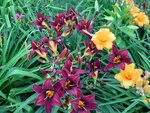 Краткое описание: Высота растения: 75–85 см (во время цветения) Ширина растения: около 60 см Листва: узкая, тёмно-зелёная Размер соцветия: 7–9 см Цветок: кремово-персиковый с лилово-бордовыми прожилками и гофрированными лепестками Цветени