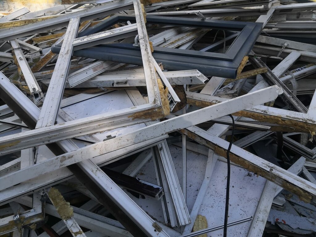 Прием ПВХ отходов оконного профиля после демонтажа. В таких отходах присутствует загрязнение в виде пены, металла( саморезы и прочее) и резины. Стекла отсутствуют.