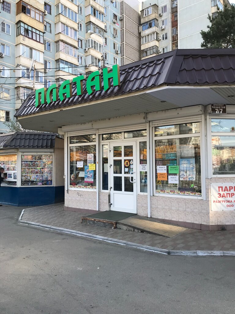 Магазина Платан на этом месте уже нет. В настоящее время здесь магазин Ермоленко. Его и оценила. Чистота. Вежливый персонал. Очередей почти не бывает хорошее качество продуктов и довольно большой ассортимент.