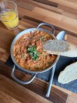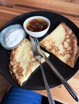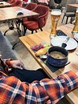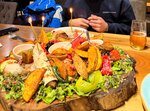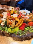 The restaurant is great, the food is delicious. The interior is very different, strangely combined, but it's a matter of taste) The portions are not huge and not small, just right. The staff is very helpful. Very nice dishes. And the most delicious homemade (dry red) wine in novy Gudauri. The price tag is not cheap, but it's worth it, the breakfasts and dinners are delicious, and the service is beautiful. It may seem like a long wait to you, but it's worth it) . The only thing I didn't like was the pink chacha, it seems perfumed, but it's a matter of taste, everything else was great! And the staff make this place very soulful! In the photos: excellent shakshuka, pancakes from breakfast, and dinner lobio with great pickles and salad platform, it's huge, combines so many products that it seems strange at first glance, but it's worth taking it to the table and helping yourself to everything from there throughout dinner, sesame cheese with wine, and salad during the meal and have a cheese crunchy snack at the end