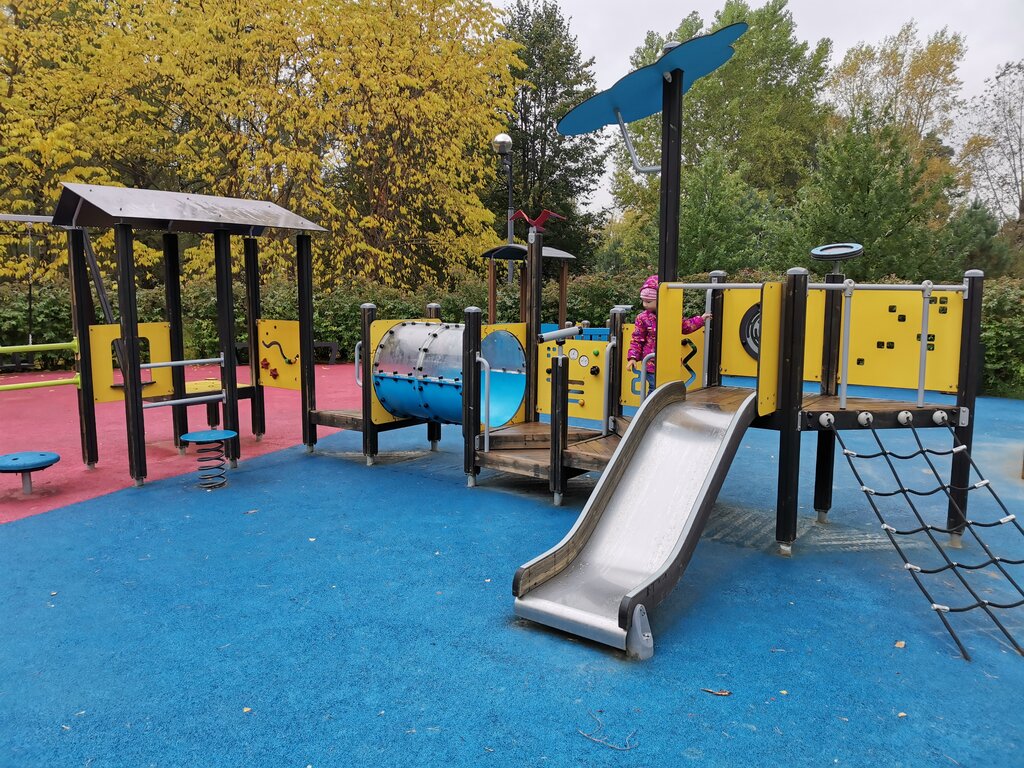 Хорошая малышковая площадка, вдали от дорог, просторная, есть безопасные качели, маленькая горка, скамейки, всякие дрыгалки-прыгалки, по периметру площадки посажены кусты, удобно, дети особо не разбегутся. Частая проблема многих песочниц - мало песка, особенно в конце летнего сезона, не хватает его и на данной площадке, хорошо бы контролировать данный момент администрации парка. И не хватает тенистого уголка в жару, как на сковородке, какой-то беседки или навесов над скамейками . Резиновое покрытие как плюс, так и минус. В жару , на солнце, стоит ощутимый запах резины. Тем не менее ставлю 5 звёзд. P.S. Песок насыпали