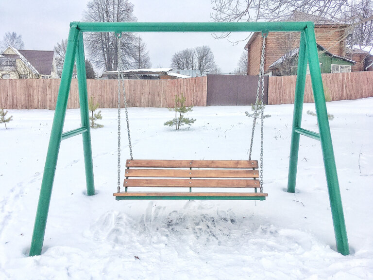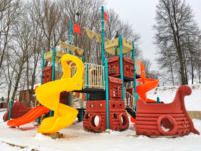 Зимой улетели на ватрушке в полынью. После этого администрация сделала импровизированный отбойник из снега. Детская площадка в виде корабля любимое детьми место для прогулок.