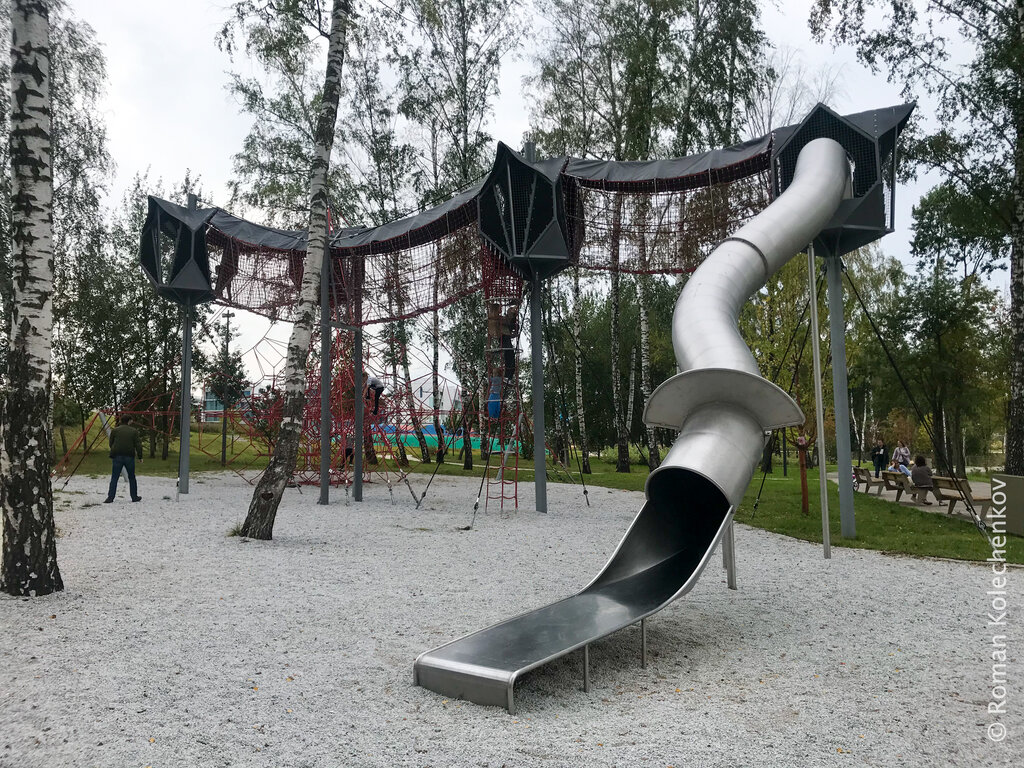 Отличные детские площадки в Сколково. Особенно нравится та, что немного в стороне от центральной у пруда, в тени деревьев, основание которой из мелких ракушек. В жару там отлично. Хорошо можно покататься на самокатах, много удобные дорожек. Отличная прорезиненная площадка Вулкан, хоть покрытие уже местами порвано, но детям там нравится. Зимой отлично можно кататься на попе с горки.