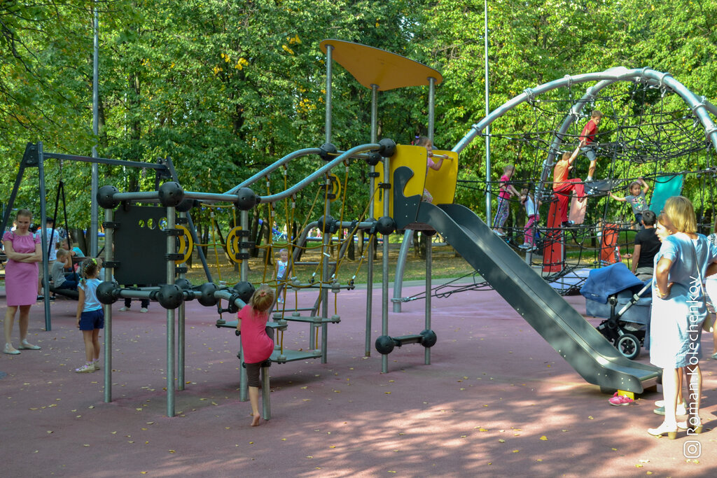 Отличный парк. Есть интересные площадки для разных возрастов. Летом есть кинотеатр под открытым небом.
