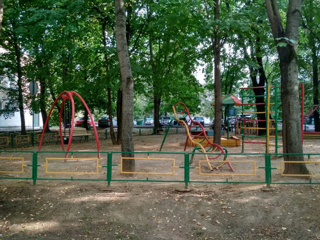 Хорошая была площадка. Теперь только на фотках осталась. Ее отличало этакое советское оформление, всё железное, на века, весело раскрашенные конструкции, и песочек под ногами. Площадка всегда находилась в тени деревьев, т. к вокруг неё будто оазис лесного уголка. Летом в жару мы обожали гулять на этой площадке с детьми. Сейчас ее модернизировали, песок укатали в резину, конструкции сменили, сделали акцент на малышовости. Детям от 5+ там уже делать нечего, не на чем лазать. И всё же я ставлю ей оценку 5, в память о прежней площадке.