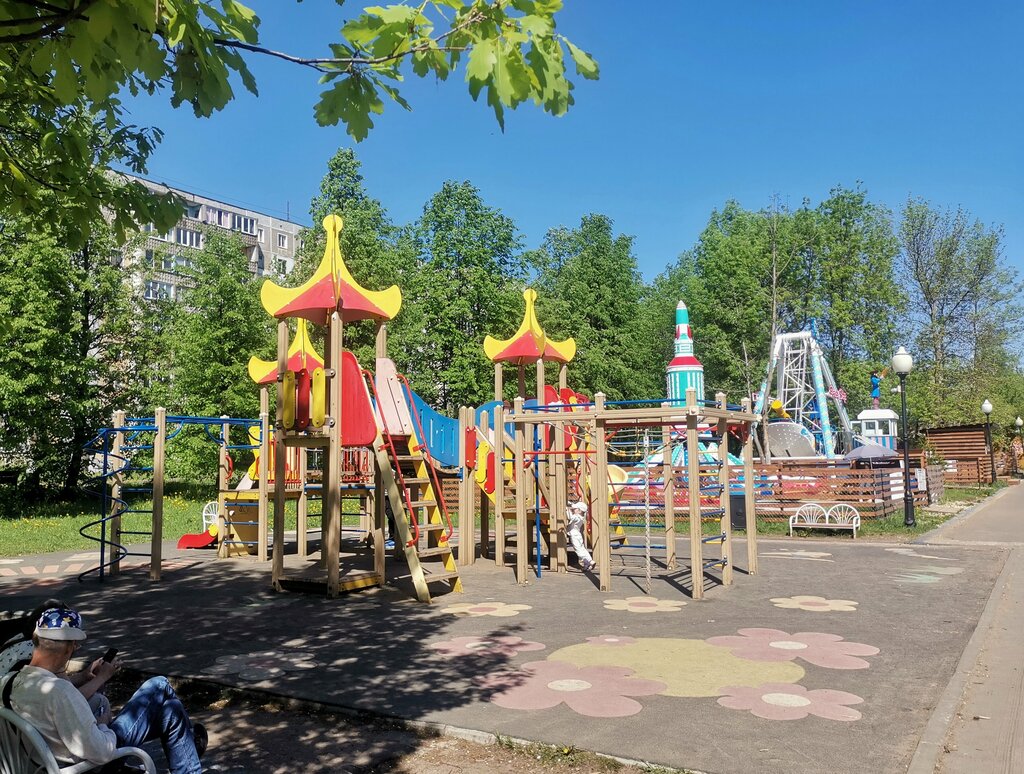 Хорошая детская площадка, весёлая, нравится детям. Хотелось бы увеличить её площадь – когда детей приходит много случается толкотня. А так всё нормально, есть даже лужайка и скамеечки.