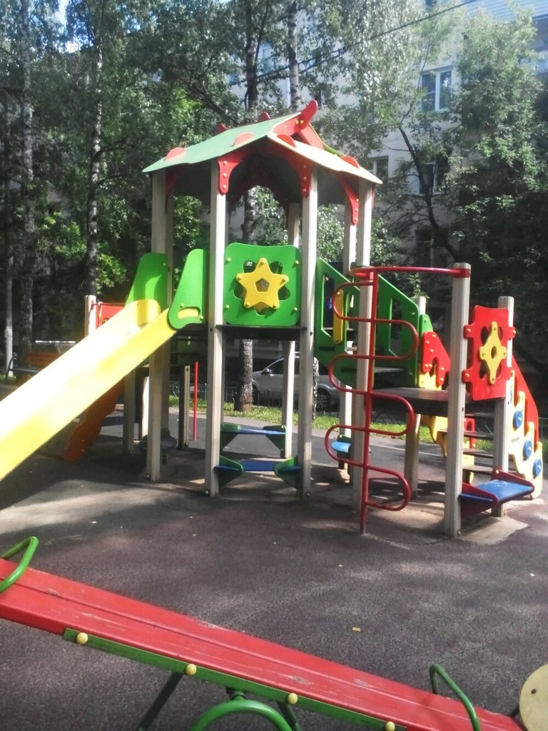 Хорошая площадка для детей, а вечером и контингенту постарше есть где отдохнуть)