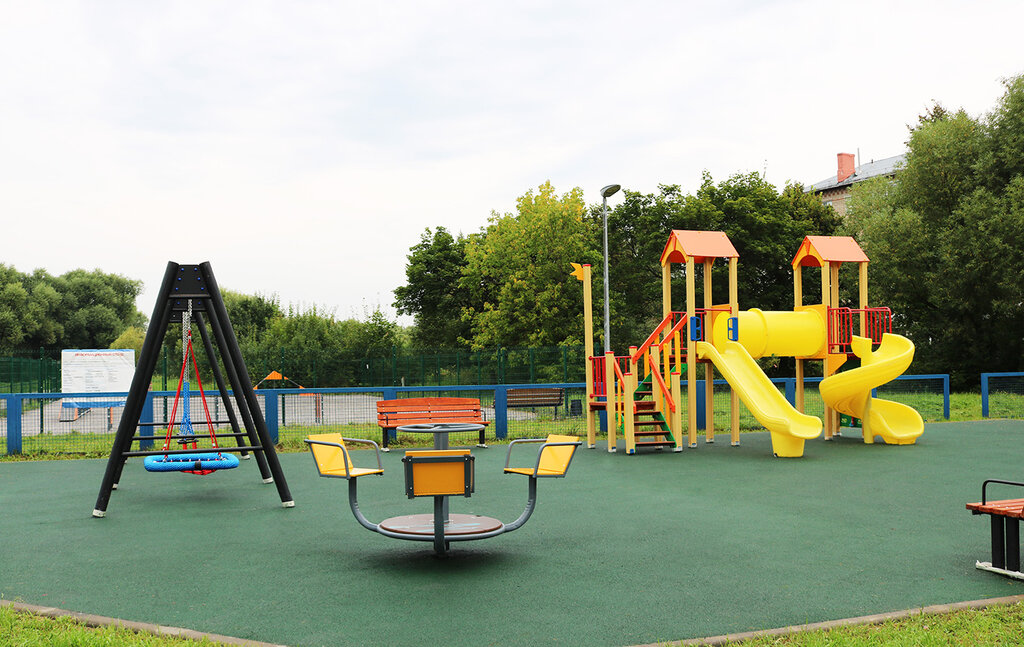 Площадка простая, но все самое нужное для детей есть:качели, горка, песочница.